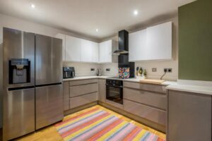 A superb modern four-bedroom eco family home that offers a perfect blend of contemporary living and sustainability. Spanning three substantial floors, and boasting an open-plan living area that creates a spacious and inviting atmosphere, it's ideal for both family gatherings and entertaining guests.