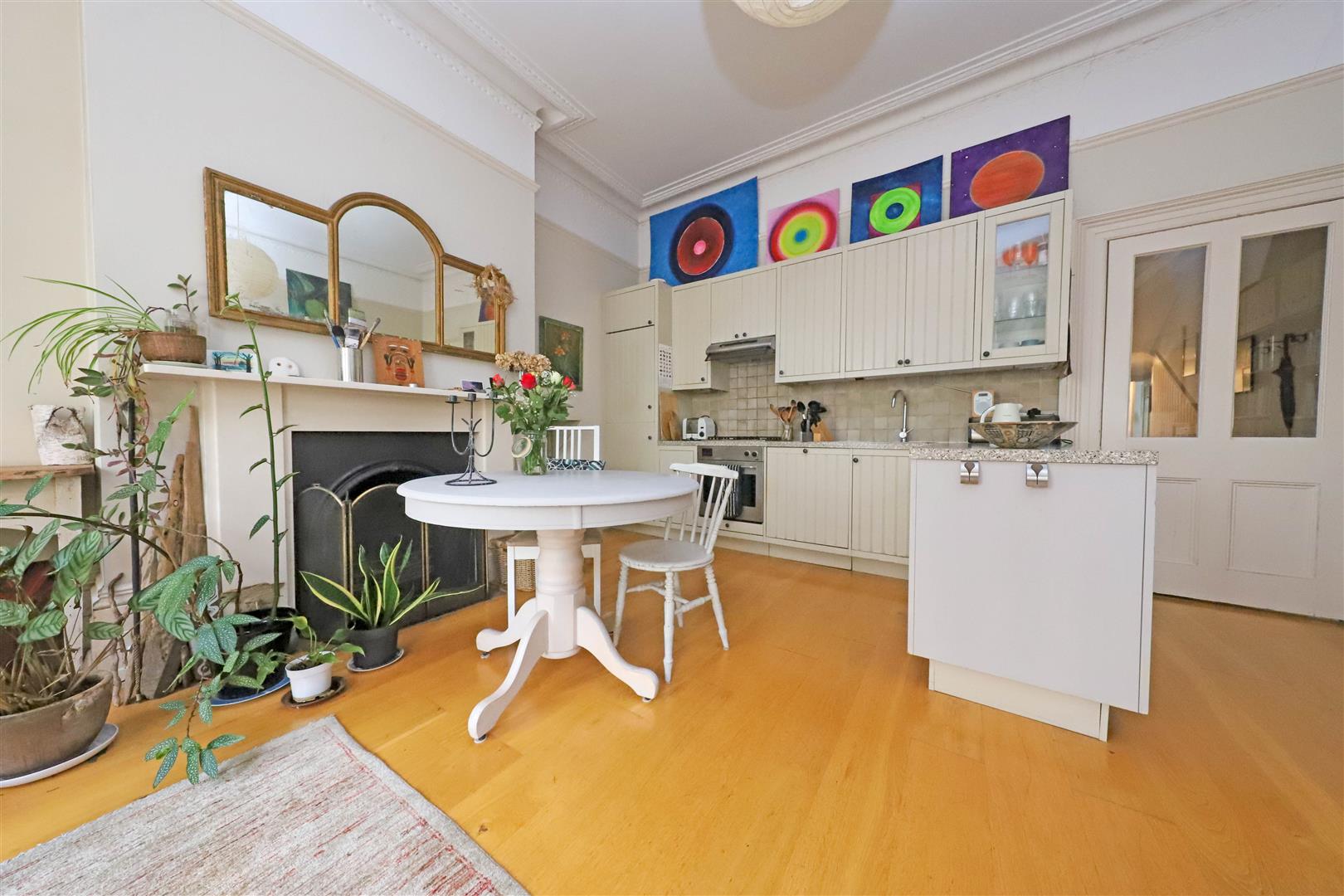 Fantastic raised ground floor apartment with delightful private rear garden. This characterful apartment, benefits from high ceilings, large sash windows and feature fireplaces in the living room and both bedrooms. There is real feeling of space throughout with a lovely layout and good sized rooms comprising; west facing open plan living area, bathroom and two double bedrooms. The lovely rear garden is the jewel in the crown, a tranquil space rarely available in this central location.