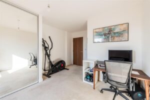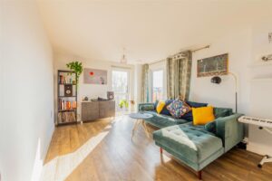 The property comprises two generous double bedrooms, including a principal bedroom with en-suite. The open-plan kitchen, fitted with Bosch integrated appliances, flows seamlessly into the dining and living area, creating a bright and sociable space ideal for both everyday living and entertaining. There is a lovely modern fully tiled bathroom.