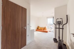 Additional features include a utility cupboard with washer/dryer, secure bike storage, and the option to rent a parking space (approx. £19 per month).