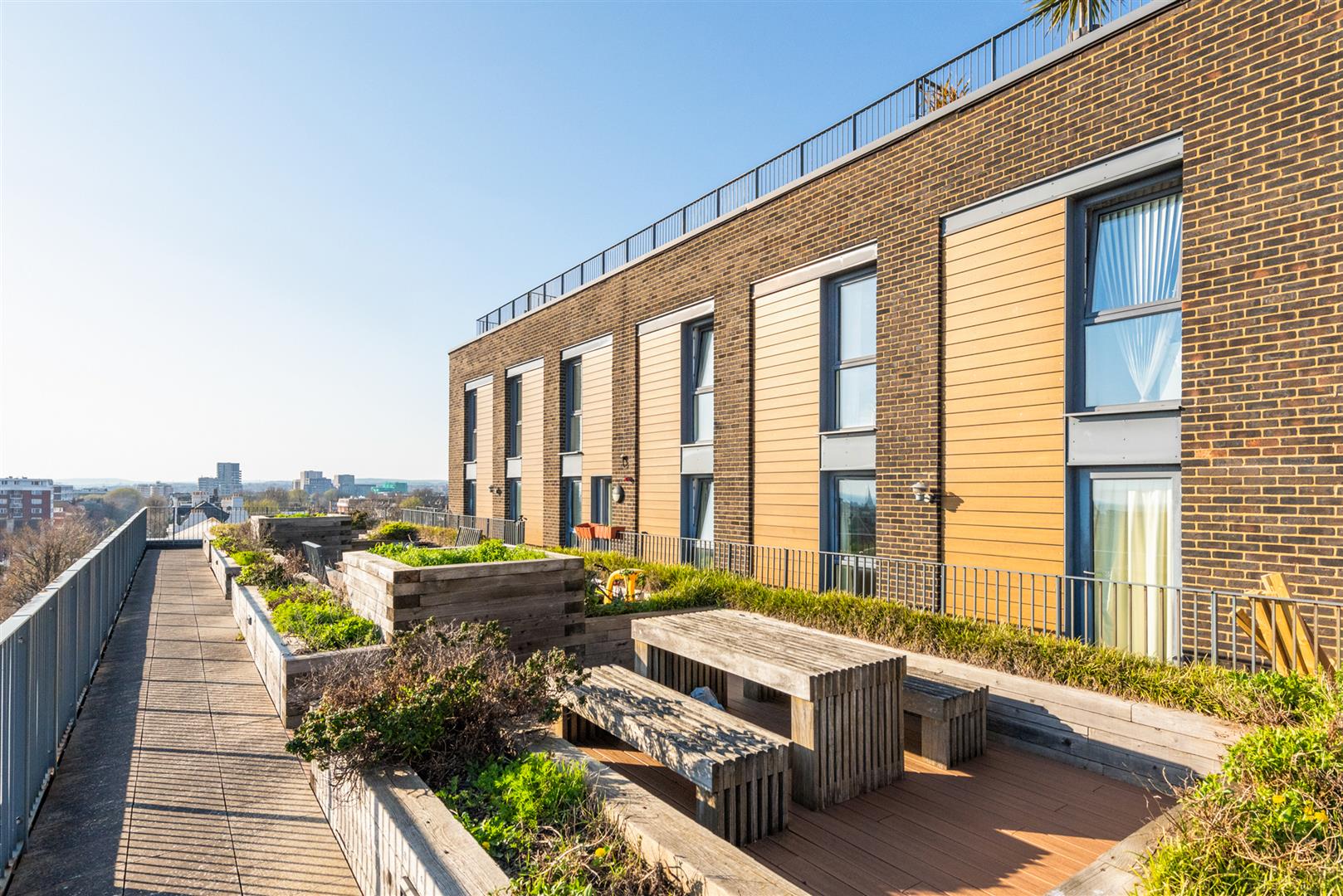 Residents benefit from exclusive access to two communal roof terraces on the fifth and seventh floors, offering far-reaching views across the city, coastline, and South Downs. The property further benefits from the remainder of an NHBC warranty, providing added peace of mind.